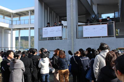 今日は9時から平成31年度水俣高校に入学予定の受験者の合格発表がありました。合格できたか不安だった中学生たちは自分の受験番号を見つけると一気にその喜びを爆発させ笑顔で保護者や友人たちと喜びを分かち合っていました。
