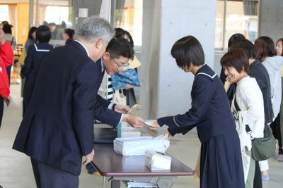 合格者は発表後に制服や実習服、体育服など高校生活で必要なものの採寸をしました。今はまだ、慣れない制服や実習服にも違和感を感じているかもしれませんが、歴代の先輩方がそうだったようにきっと新入生の皆さんも入学して卒業する頃にはすごく制服や実習服が似合うように成長できると思います。皆さんがその新しい制服姿で笑顔で入学式に登校してくることを楽しみにしています。