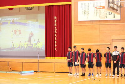 本日、水俣高校体育館にて三学期終業式を行いました。終業式に先立ち、各種競技や検定など多くの賞を受賞した生徒の表彰式も行われました。
