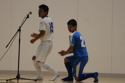 午後は保護者の方々の主催で水俣駅前広場でスタミナ会と称したバーベキューを行いました。午前中に運動した分、生徒たちは大量の美味しそうな肉や焼きそばに集まり、すぐに無くなってしまいました。今日のスタミナ会で生徒たちには大量のスタミナがついたと思いますので、今後の練習も頑張っていきたいと思います。