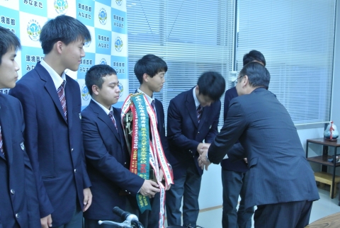 米納康志校長先生と各生徒8人からお礼と今回の感想を伝えました。市長様からはお祝いの言葉とこれからの活躍を願うお言葉を賜りました。