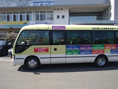 発表会場までの移動には、PTAバスを利用しました。水俣高校応援団企業の皆様のおかげもあり、バスの維持管理ができています。本当にありがとうございます。