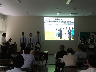 5月20日(金)、中間考査終了後に平成28年度高校総体選手推戴式が行われました。副校長先生から激励の言葉をいただき、カヌー部の渕上君が選手宣誓を行いました。各部の主将から大会会場や意気込みを話してもらいました。