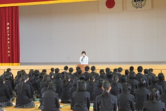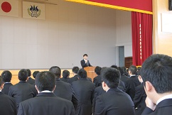 それから、水高生としての身だしなみについて、説明がありました。本校では、月に1回、各学年ごとに服装頭髪指導を行っています。