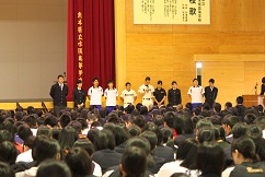 9日(木)の午後は、新入生と2・3年生の対面式が行われました。この日のために生徒会執行部は夜遅くまで準備を進めてきました。生徒会長の温かい歓迎の言葉がとても印象的でした。