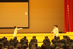 水俣高校には、23の部活動と1つの同好会があります。なかには、全国大会で活躍する部活動もあり、文武両道に力を入れています。9日(木)の最後は部活動紹介が行われました。パフォーマンスやDVDでの紹介など部の雰囲気がよくあらわれていました。