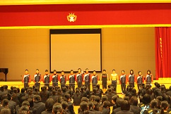 その後、各団に分かれて結団式が行われました。応援リーダーの挨拶と校歌の練習を行いました。体育大会は5月10日(日)です。本番は晴れるといいですね。