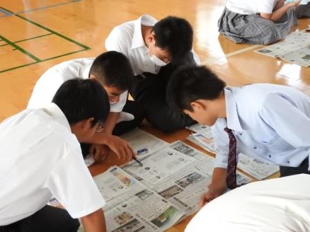 新聞を用いて「社会を見つめる力」「考える力」「表現する力」を磨き、社会のことを知り視野を広げることを目的として、今回は「新聞」の概要や、「新聞」の読み方等について話されました。特に今回の取組の中の「見出しを考える」ことは、今後のSGH事業における課題研究につながると思います。