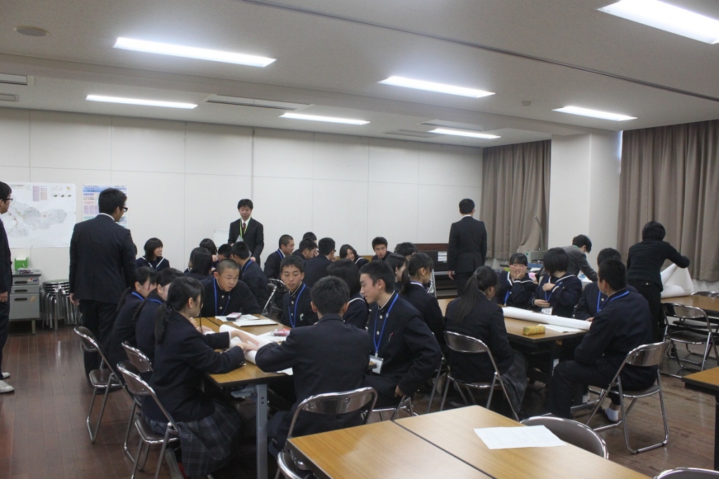 12月14日(月)に水俣市が主催する「第1回 地域資源等と連携した初恋のまちづくり検討会」に参加してきました。この会は、市内経済団体・市職員・本校生が検討会メンバーとなり、アイデア出しから形にしていきます。今回は、「企画のたまご」ということでグループで討議して発表をしましたが、どの班も本校生が発表役となり説明していました。今後は企画を具体化していき、来年度には実際に取り組むことになります。