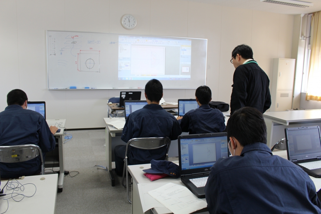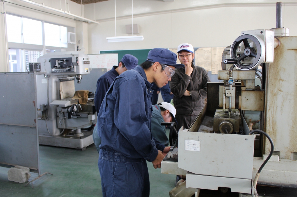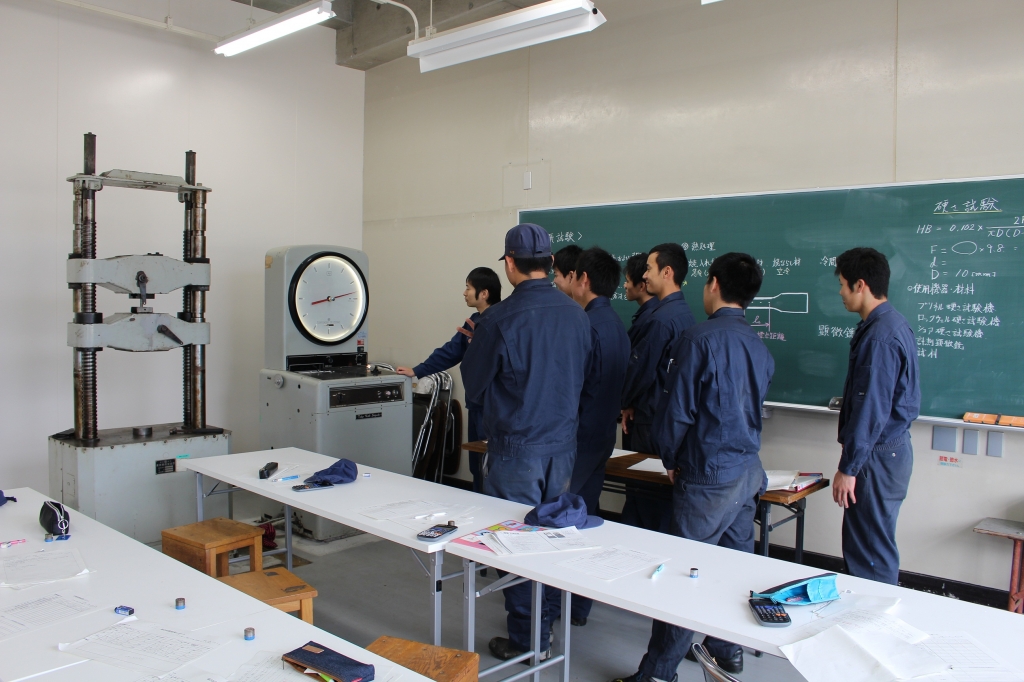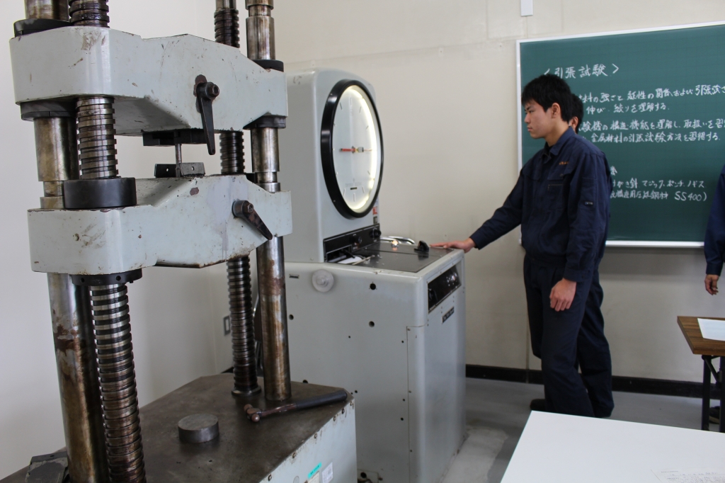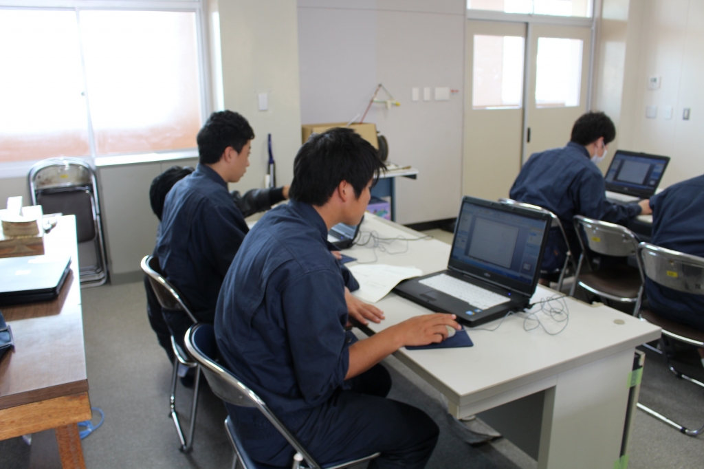 機械科3年生の実習風景です。実習内容は特殊機械実習、材料試験実習、鍛造実習、CAD実習の4テーマの実習を行っています。3年生ともなると、機械の操作や各種作業もばっちり。テキパキと実習に取組んでいました。