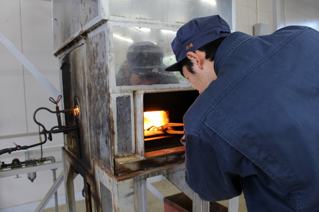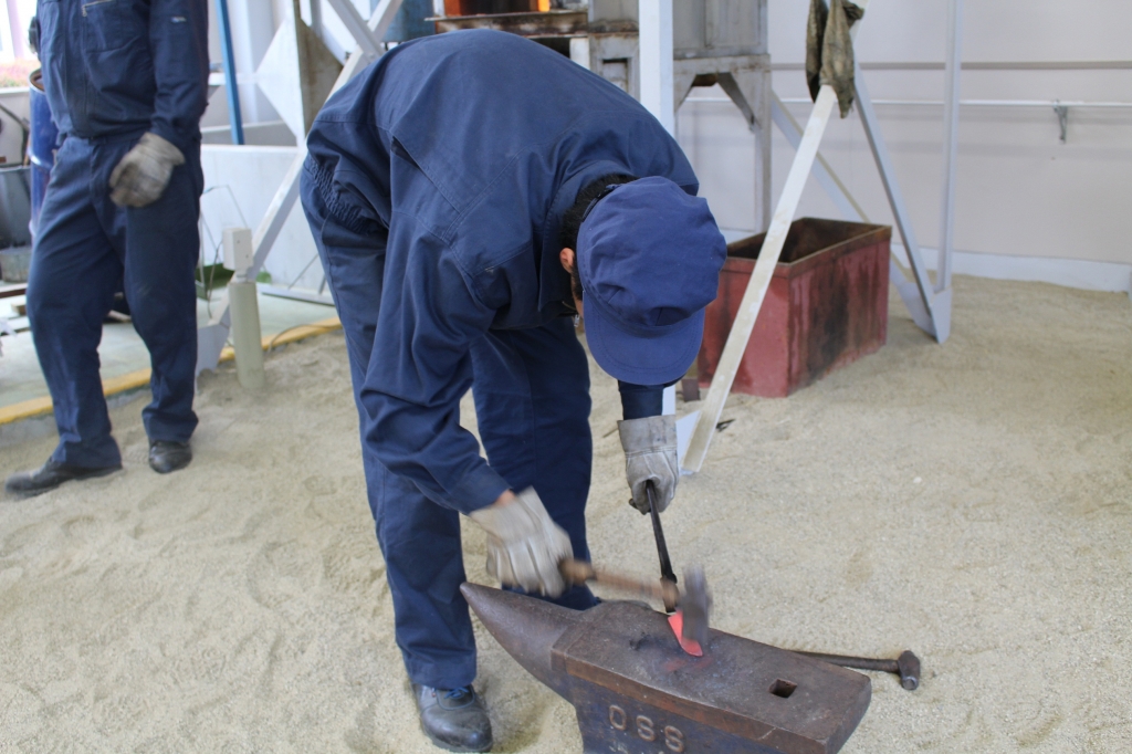 【鍛造実習】 鉄を熱し、叩いてペーパーナイフを製作しています