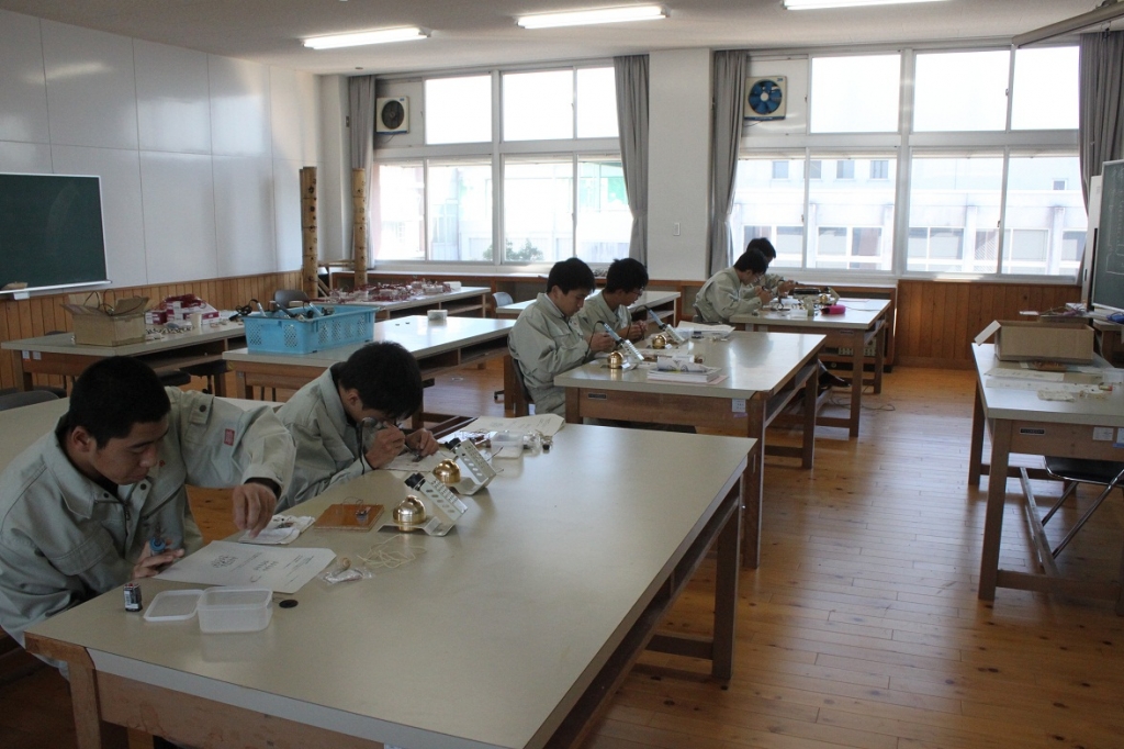 23日(土)に本校旋盤実習室において、国家資格である技能検定旋盤作業3級の実技試験が行われました。この試験は、支給された鉄の丸鋼を2時間半以内に課題図に沿って切削する試験です。当日は、冷え込みが厳しく、手で旋盤を触るのも辛いぐらい気温の低い中で、ミスをしてしまう生徒もいましたが、皆最後まで切削を頑張り、全員制限時間内に切削完了することができました。この日まで約2ヶ月半練習してきましたが、今日の作品が一番良い仕上がりになったのではと思います。実技の次は、筆記試験(31日)が行われます。筆記試験も頑張って下さい。