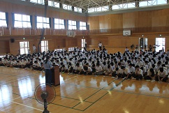 15日(水)に校外生活に関する講話が行われました。熊本県水俣警察署より講師をお招きし、交通課の方より、交通安全について、生活安全課の方より、薬物乱用防止および携帯電話についてお話をいただきました。