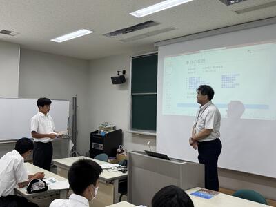 オジックテクノロジーズ合志工場では、企業概要説明の後に、ウエハ、アルマイト、パワーデバイスの3工程に分かれ、それぞれの内容や特徴などを見学、お話しいただきました。また最後は若手職員の方による学生時代の話などを聞くことができ、生徒は終始、真剣な表情で聞いていました。