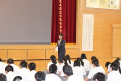 小嶋会長から、今回の受賞報告を行い、市や地域の支援のおかげで受賞できたこと、PTA活動を通して水高生が活躍し、水俣を明るくしていきたいと話をされました。