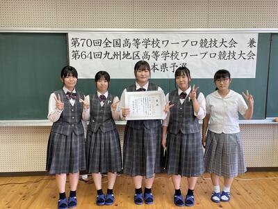 令和5年6月4日、八代東高校で、第70回全国高等学校ワープロ競技大会兼第64回九州地区高等学校ワープロ競技大会熊本県予選が行われました。3年生1名が8月に東京で行われる全国大会への出場権を見事獲得しました。県代表として頑張ります。今後とも応援よろしくお願いします。