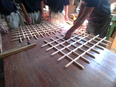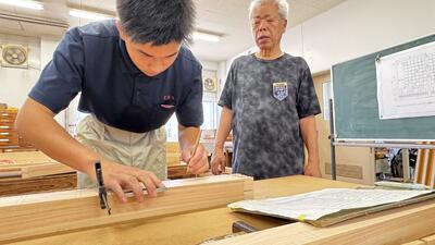 現在、建築科では「ものづくりマイスター」の指導のもと、塩釜神社の建具(たてぐ)を製作する貴重なプロジェクトに挑戦中です。