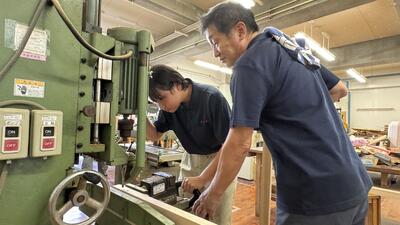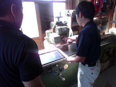 本日行われた第2回目の実技指導は、なんと学校を飛び出し、マイスターの工場(こうば)で実施されました。