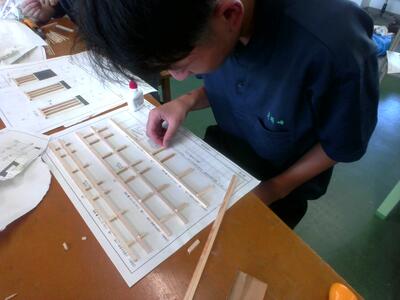 【建築科】建物のカタチが見えてきた!1年生軸組模型製作
