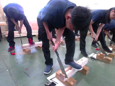 【建築科】未来の職人へ 待望の木工実習スタート!