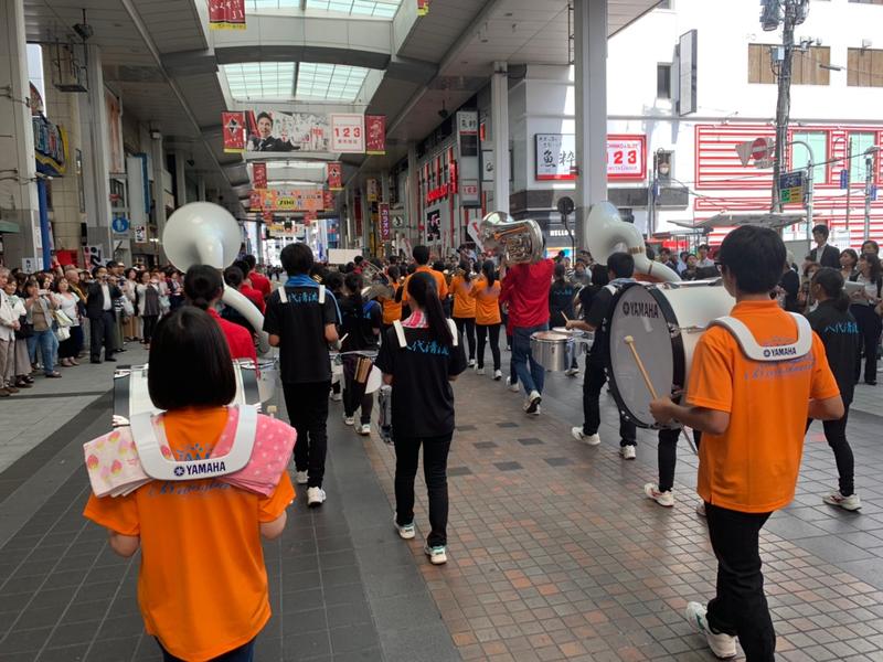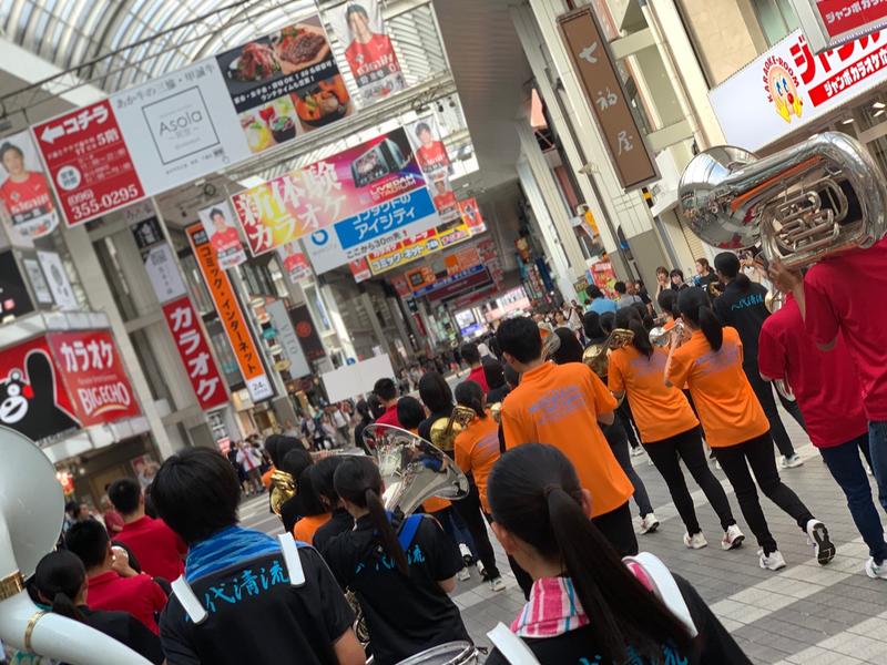 合同での練習は2回しか実施できず、短い練習期間でしたが、他校生徒との交流や熊本市内のアーケード街で演奏するという貴重な経験をさせていただきました。
