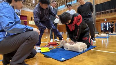 90秒間の胸骨圧迫演習では、想像以上の体力消耗に「命を繋ぐ重み」を実感。また、AEDの操作やエピペンの模擬実演など、非常に密度の濃い内容となりました。