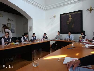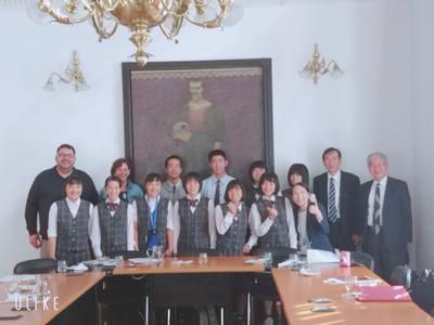 ユーリベガ高校の校長先生がホテルまで迎えに来てくれて、一緒にイドリア市役所を訪問しました。イドリア市長を表敬訪問し、イドリアの歴史、経済などを教えてもらいました。