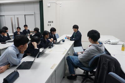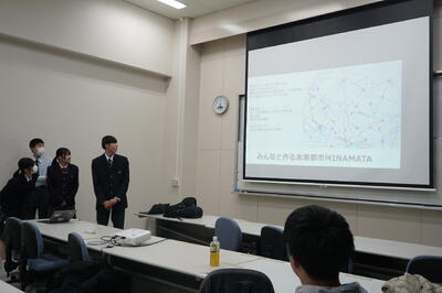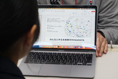 3月9日(月)の放課後、慶應義塾大学の植原教授と学生4名が来校され、水俣SDGsデジタルアートの活動を行いました。普段はオンラインで交流をしているため、対面での交流に最初は緊張もありましたが、大学生にメンターとして参加していただき、グループ活動を続けるうちに活発に意見を出し合うことができました。4つのグループに分かれ、次年度に向けての企画作りを行い、プレゼンを行いました。今回まとまったアイデアを次年度に引き継ぎ、夏に実施予定のASEAN留学生との交流事業やSDGs未来都市フェスタで成果を発表できるよう、今後も取り組んでいきたいです。