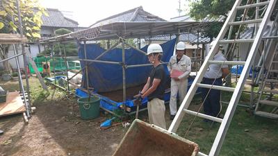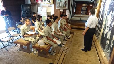 10月8日(火)の14時~15時半に、建築コース2年生10名が水俣市德富蘇峰・蘆花生家衣屋蔵修繕工事の現場見学を行いました。地元建設業者様、水俣市のご支援のもと貴重な文化財の伝統技能を用いた工事を見させていただきました。生徒たちは、事前学習を行ったのちに現場見学を行ったこともあり興味深く見学していました。また、現場には平成30年の卒業生が働いており、「建築はやりがいのある仕事で将来一緒に建築を頑張りましょう。今のうちに資格を取れるよう頑張ってください。」と激励とアドバイスを頂きました。
