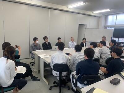 最後に、産学官が勢ぞろいして、ジョウ所長がMCとなり、クロージングセッション(意見交換会)を開催しました。生徒たちがDXや仕事についてなど、ジョウ所長や企業の方々に質問し、それに対して回答やアドバイスをたくさんしていただきました。時間が足りないほどセッションが盛り上がり、関係者の方々から生徒たちへ期待や激励の言葉を多くいただきました。