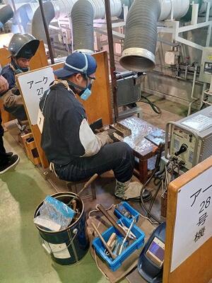 地元の摂津工業株式会社様より技術指導及び資材の提供をいただきながら、溶接競技に挑戦しました。