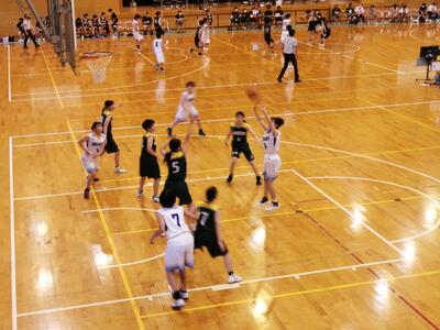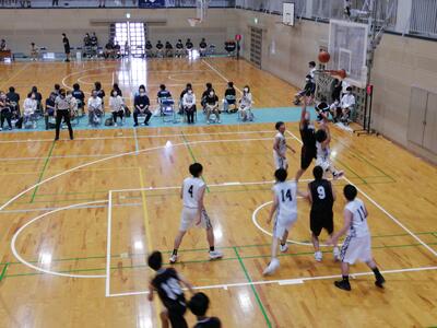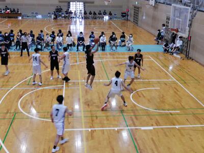 県内屈指の強豪校との対戦でした。3年生選手全員が一致団結し、なんとか3Pシュートも決めることができました。最後まで諦めず必死に食らいつき、よく健闘しました!