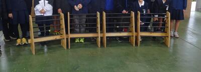ワークショップの内容は多岐にわたります。ビス打ちや釘打ちの練習を行い、感覚を掴み、練習の成果を活かし、丁寧に組み上げ、丁寧にやすりがけを行い、銘板プレートを取り付け、屋外でのクリア塗装を行いました。完成した瞬間に見せた小学生たちの笑顔は、何よりの報酬でした。 高校生にとっても、自分の持つ技術が「誰かの役に立ち、喜ばれる」という体験は、将来の建築技術者としての自信につながる大きな一歩となりました。