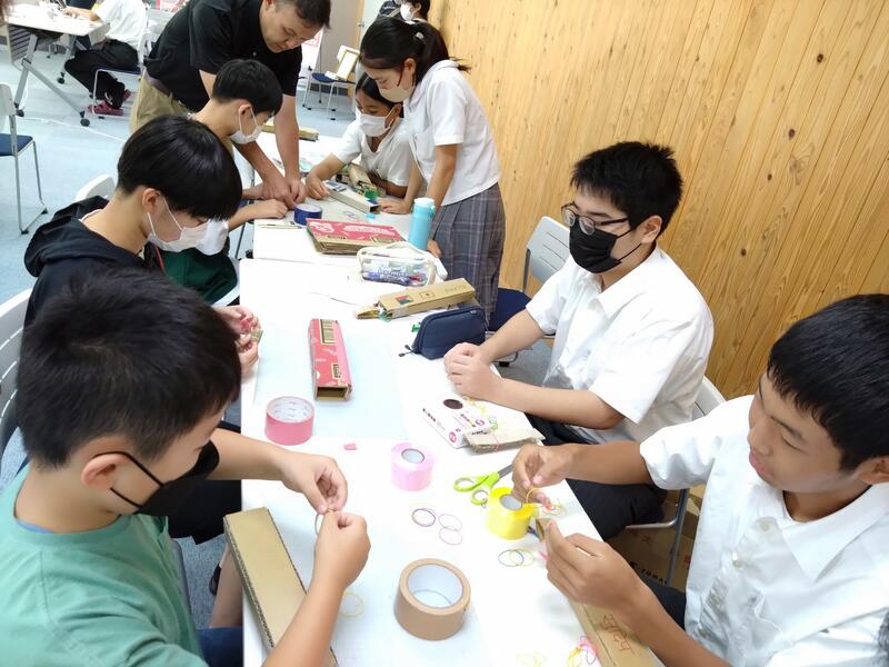 内容は、①段ボールでペットボトルキャップをとばすシューティングガンを作成→②SDGsに関するクイズに答える→③答えの番号を作ったガンで狙う→④正解した数に応じてスタンプがもらえる→⑤スタンプの数に応じてアイスクリームのトッピングがもらえる、というものでした。