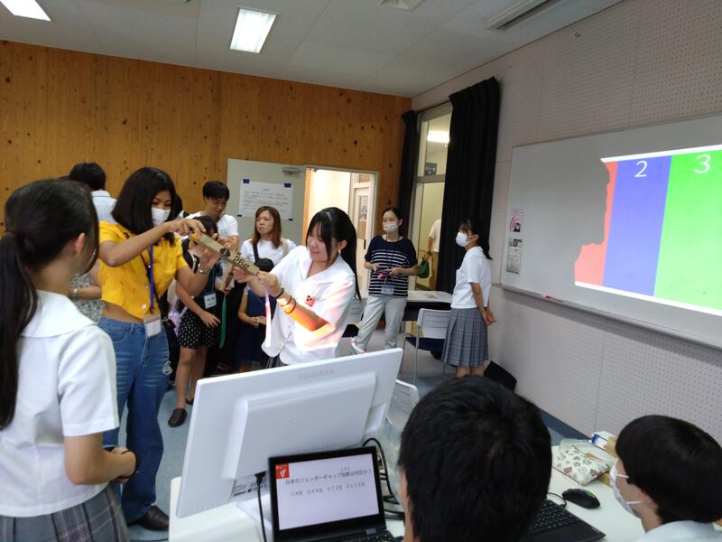 お客さんは来るのかな…とドキドキしていましたが、当日は子どもだけでなく多くの大人の方、市役所の人や水俣市で働いている外国人の方、古賀所長にも挑戦してもらいました。昼頃には混雑で、クイズコーナーで待ってもらうほどでした。クイズより景品のアイスにくぎ付けな子どもたちもいましたが、多くのかたにクイズがとても勉強になった!という感想をいただき、少しでも水俣市のSDGsの取り組みを知ってもらうことができたのではないかと思います。