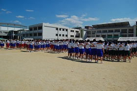平成30年5月12日(土)、水俣高校グラウンドにて体育大会を行いました。雲一つない晴天のなか生徒たちの活気溢れる行進に始まり、徒競走、クラス対抗リレー、集団競技すべての競技で各団による熱戦が繰り広げられました。応援団演舞では、どの団も息の合った動きと迫力ある演技で会場を盛り上げてくれました。3年生に取っては最後の思い出となり、1・2年生にとっては来年につなげることができた体育祭になったと思います。また、保護者、地域の皆様におかれましても多くのご観覧やご声援ありがとうございました。PTA役員の皆様も給水などご協力ありがとうございました。