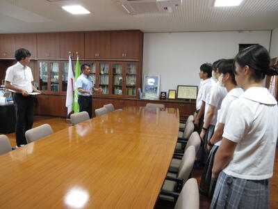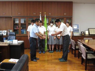 本校同窓会から会長の澤村様に来校いただき、出場生徒に激励のことばと激励金を贈呈されました。