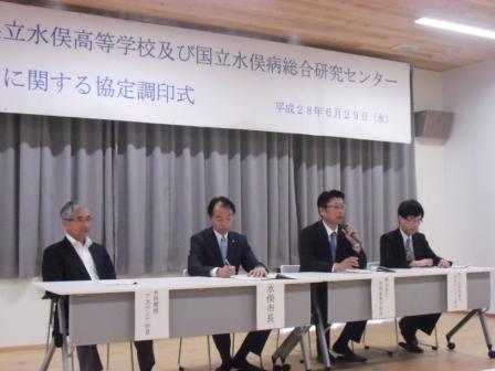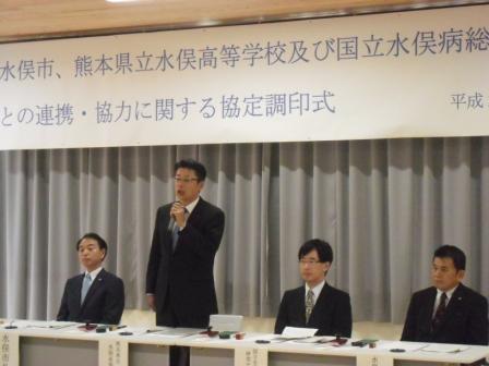水俣市、熊本県立水俣高等学校及び国立水俣病総合研究センターとの連携・協力に関する協定の締結調印式