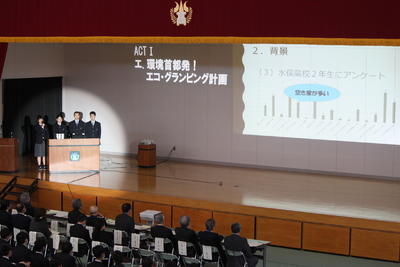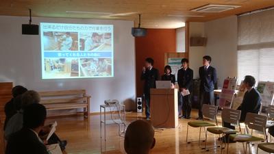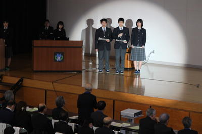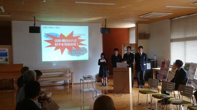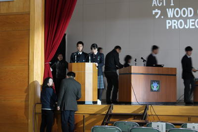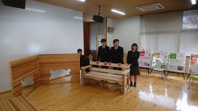 生徒代表挨拶では、「多くの方々のご支援、ご協力の下にこのプロジェクトができたことに感謝し、自らが伐採した木材を使い技術指導を受けながら製作したベンチ11台を水俣市民の方々に永く使ってもらえることを嬉しく思います。」と述べました。水俣環境アカデミアの古賀所長より、「地域のために、今後もプロジェクトを支援していきたい。」と言っていただきました。