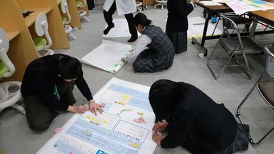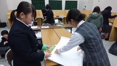 成果発表会のポスターを印刷して貼り合わせ作業をしました。吹奏楽部の皆さんが手伝ってくれました!ありがとう!着々と準備を進めています(^^)