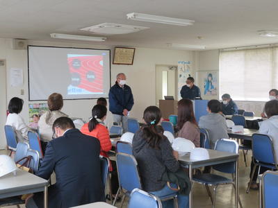 今回は、受付後に校内施設見学をしてもらい。また、学校の防災の取組みについて報告しました。