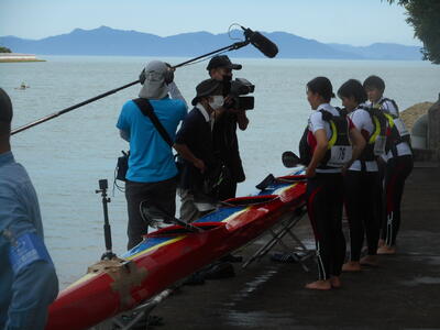 四国インターハイ2022に出場する水俣高校カヌー部女子カヤック選手へのテレビ取材が6月26日(日)にありました。