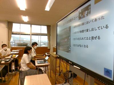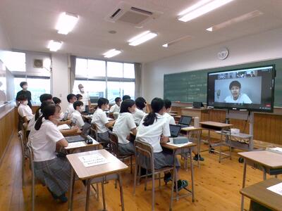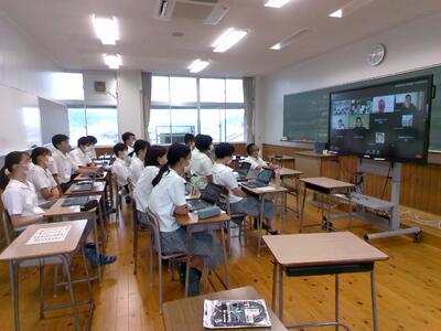 7月8日(金)2年生の総合的な探究の時間に、ベトナムの日越大学とのオンラインワークショップを行いました。ベトナムの学生と本校生徒がグループになり、共同研究を進めています。今回は、ベトナムの学生に本校の高校生活について知ってもらうため、生徒が制作した動画で学科の特色などを紹介し、英語でクイズを出題しました。正答率が高くて驚きました!!また、水俣環境アカデミアより水俣市の概要を説明していただき、最後には各グループの研究テーマを発表しました。