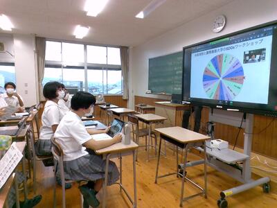 7月5日(火)に高大連携未来塾(水俣高校✕慶應義塾大学)のワークショップを実施しました。参加生徒は1・2年生16名です。今回は第1回オリエンテーションで、SDGsの概要を学び、大学生との交流を楽しみました!SDGsクイズでは、身の回りの物事がSDGsのどの項目に当てはまるか事前にスライドを作成し、ルーレットで当たった生徒が自分の考えを発表しました。これから大学生と一緒に「水俣市のSDGsマップ」を制作していきます!