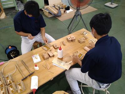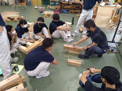 当日に向け、プレゼンや木の加湿器の試作、お土産品の製作など準備をしっかりと行っています。建築の知識や技術、技能の向上、プレゼン力や協調性など多くのことを学ぶ機会になっています。