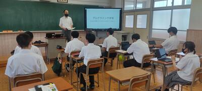 講師は、日鉄日立システムエンジニアリング株式会社の萬谷靖夫様です。水俣出身で、普段は東京在住のため、昨年まではオンラインで行われていた講座ですが、今年は仕事の都合で水俣に帰郷されておられ、対面で指導していただきました。