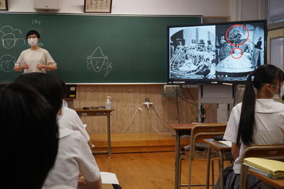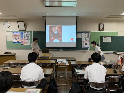 2限目は、赤十字の誕生と熊本との関係性に関する講義でした。「人道」や「中立」、「奉仕」など、赤十字の原則や歴史を、動画などを通して学び考えることができました。