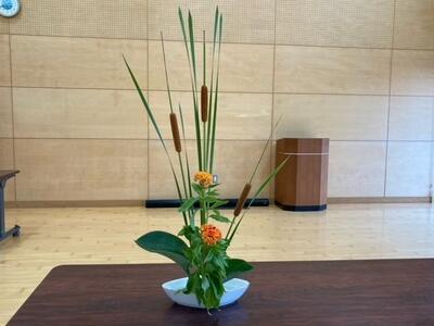 7月の花材は「ガマ、ギボウシ、ケイトウ」です。