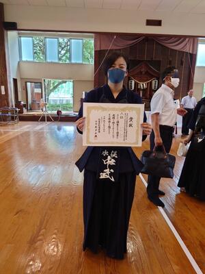 今大会は、竹刀が高校生サイズの規定から大学一般の規定になるため、これまで使っていた重さよりも20gも基準が上がり、その部分で苦労しました。しかし、今大会に向けて出稽古も増やし、たくさんの先生方や先輩方に稽古をつけていただきました。試合当日は身体の切れもよく、竹刀もしっかり振れていました。試合は3位という結果でしたが、レベルの高いこの大会で楽しい試合を経験できたことや自分の剣道が通用することを実感できました。この経験を自信に変え、今後も精進していきます。次は男子!玉竜旗大会に向けて頑張っていきます!