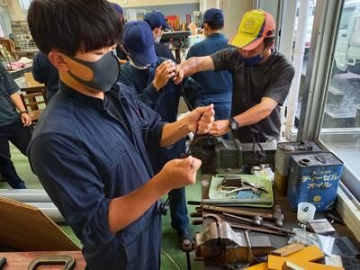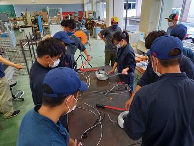 このように、地域の企業との繋がりで、現場見学や実技指導など高いレベルの授業や実習ができています。また多くの本校卒業生の方々の活躍が、在校生の励みにもなっています。今日も本当にありがとうございました。